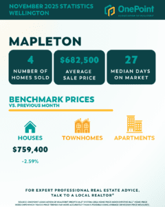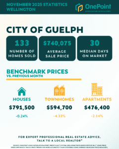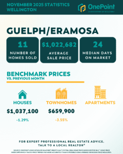 As we look back on November’s real estate activity, the market across Guelph and Centre Wellington reflected a steady, more measured pace heading into the end of 2025. Sales activity had moderated following the fall market, while home prices generally held firm across most segments.